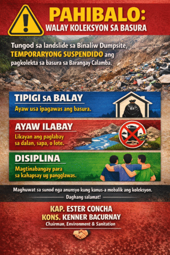 ๐ข PAHIBALO SA TANANG LUMULUPYO SA BRGY. CALAMBA ๐ข