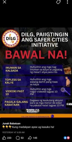 Sumala sa programa sa Department of the Interior and Local Government (DILG) nga Safer Cities…