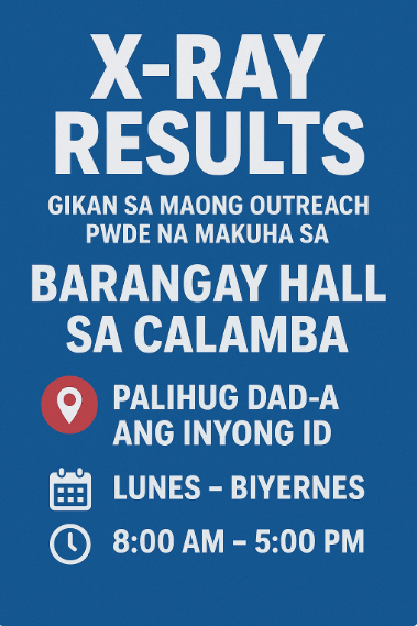 π’ PAHIBALO PARA SA TANAN TAGA-BRGY. CALAMBA (Dapit sa Sapa) Sa tanan residente sa Brgy. Calamba, ilabi na sa dapit