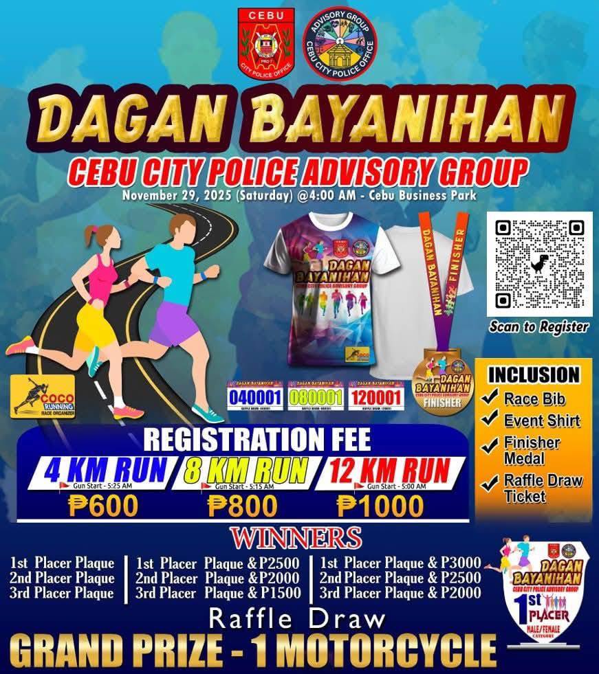Join the Cebu City Police Advisory Group for a meaningful Fun Run this November 29, 2025 (Saturday) at 4:00 AM, happening at Cebu Business Park! π