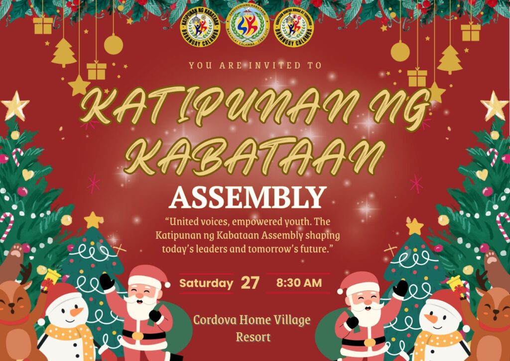 The Sangguniang Kabataan Council of Barangay Calamba, Cebu City invites all youth to join the 2nd KK Assembly on December 27β28, 2025 | 8:00 AMβ5:00 PM at Cordova Home Village, Cordova, Cebu.