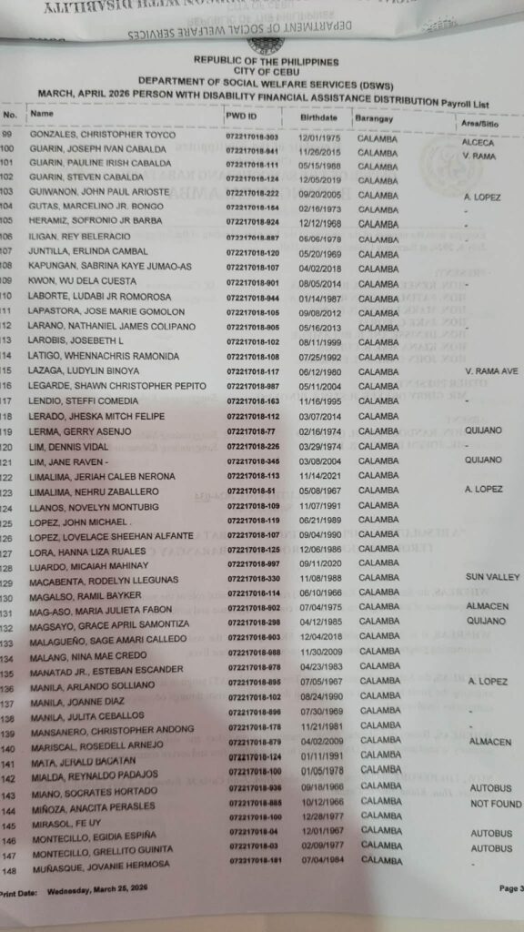 Aduna nay bag-ong batch sa Persons With Disability (PWD) nga makadawat og pinansyal nga assistance. π°