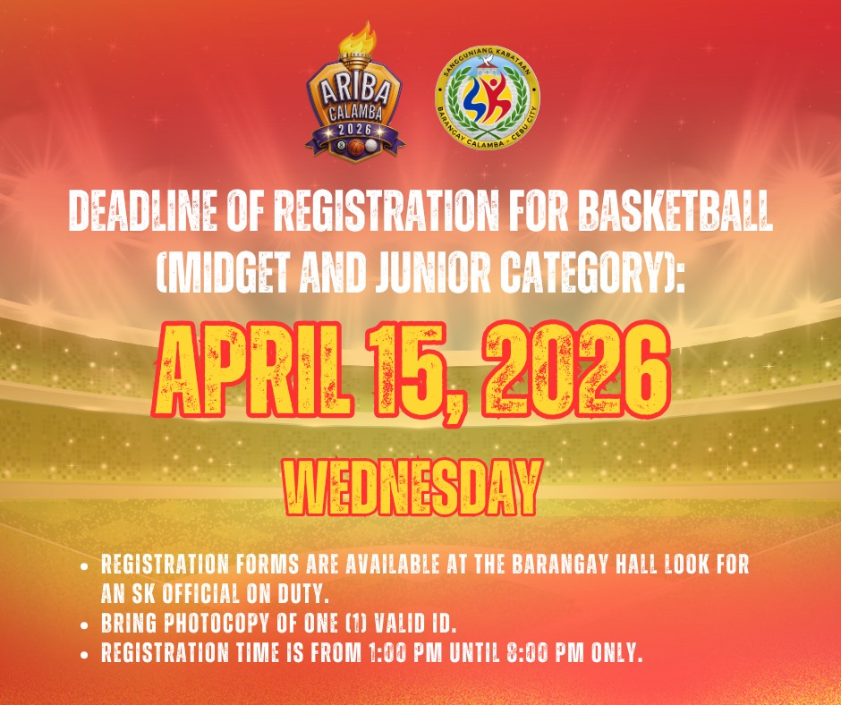 Ugmang adlawa, April 15, 2026, ang katapusan nga adlaw sa registration para sa atong Basketball League (Midget & Junior Category).