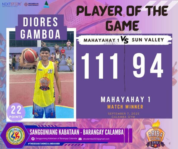 ๐ ARIBA CALAMBA GAME RESULTS โ September 6, 2025 ๐Day 2 delivered another round of…