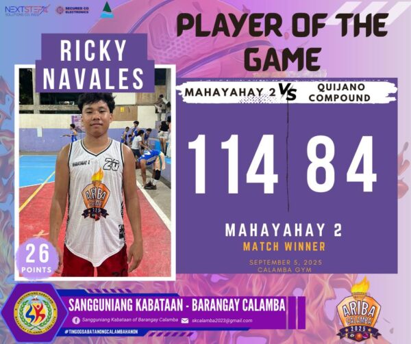 ARIBA CALAMBA GAME RESULTS – September 5, 2025The league opened with high energy and thrilling…